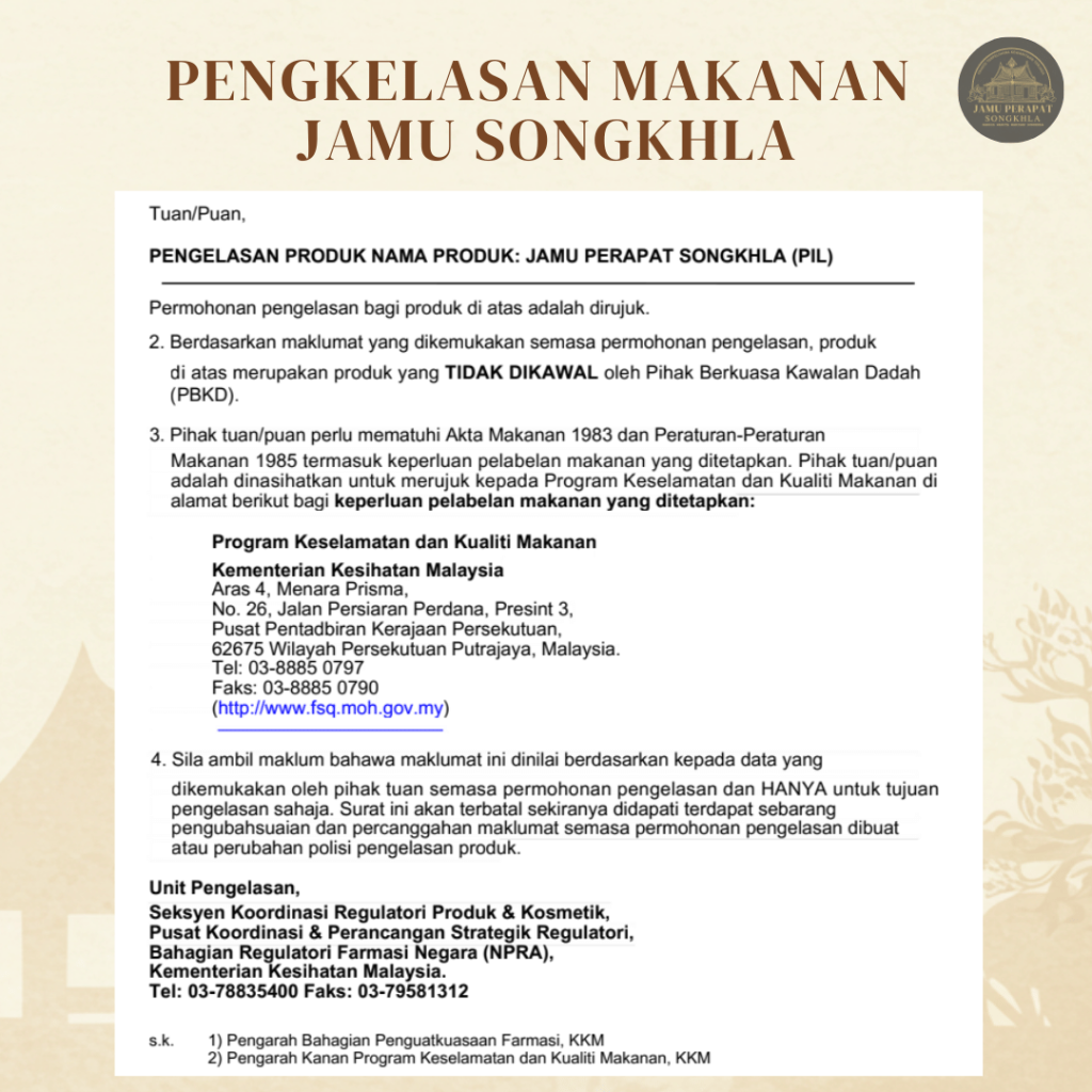 Bizwalk Business Center, Jalan Tasik Prima 6/2, Taman Tasik Prima, 47150 Puchong, Selangor. | Email: admin@jamu-songkhla.com