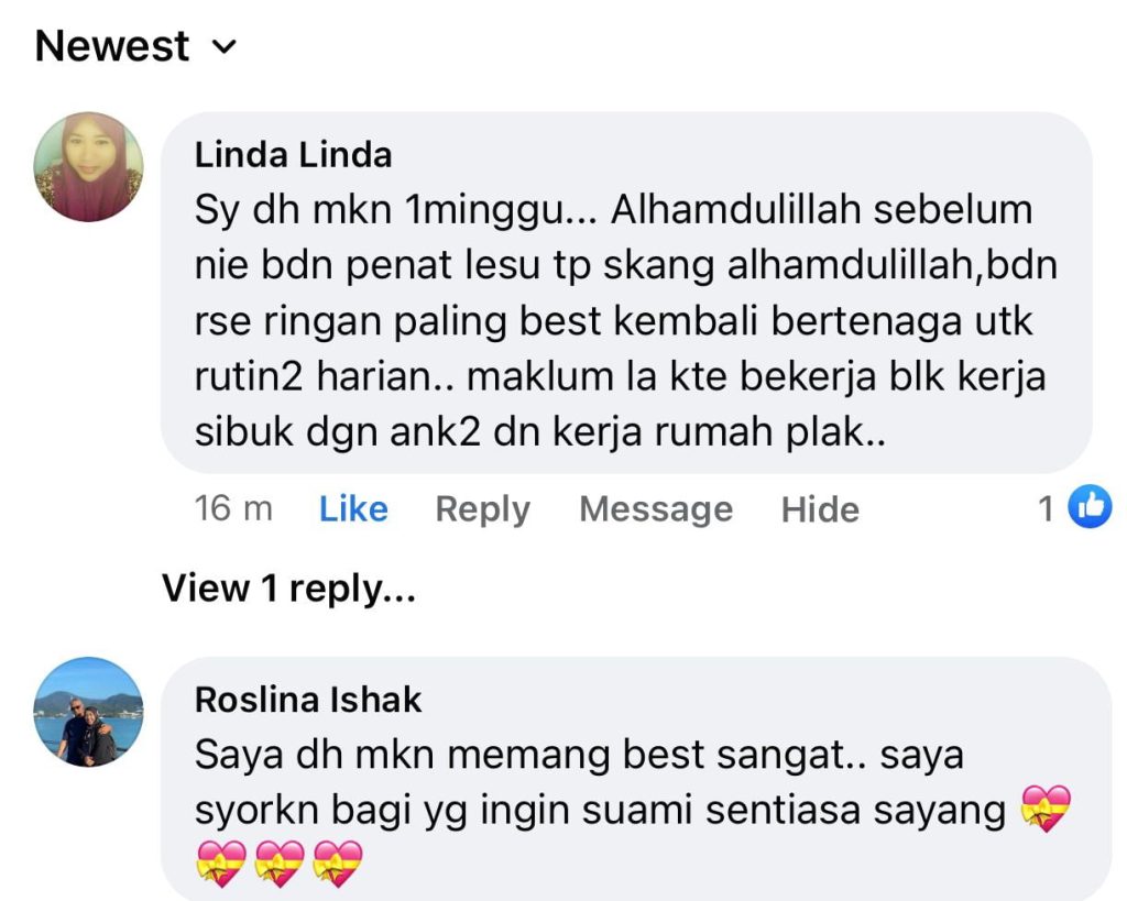 *PENAFIAN: Keberkesanan produk ini bergantung kepada kesesuaian individu. Setiap hasil dari penggunaan adalah berbeza bagi setiap individu. Produk ini akan memberi kesan terbaik sekiranya pengguna mengamalkan dengan cara betul berdasarkan banyak testimoni yang diperolehi. Kita berikhtiar, tuhan yang menyembuhkan.
